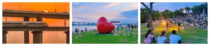 當(dāng)宮崎駿動(dòng)漫同款海上列車從海面上飛馳而過,夢幻與詩意隨海風(fēng)飄向十里長堤的每個(gè)角落。置身于打破次元壁的童話世界,眼前所見的是草坪、大海、飛鳥、長橋、落日,還有偶遇的海邊livehouse,滿足你對(duì)浪漫的所有想象~